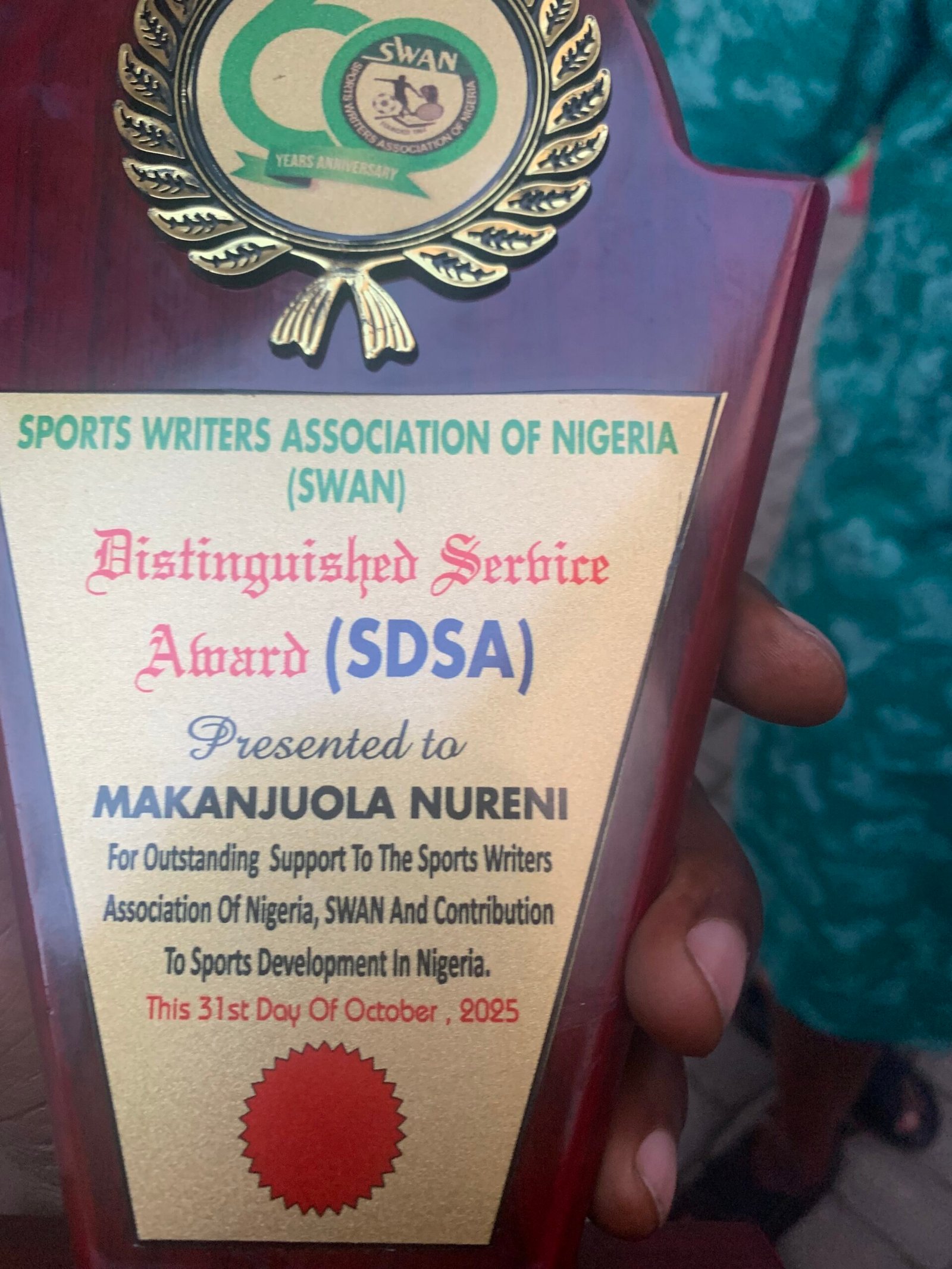 Abuja-based philanthropist and football administrator, Nureni Makanjuola, was honoured for his outstanding support to SWAN and his contributions to youth football development.